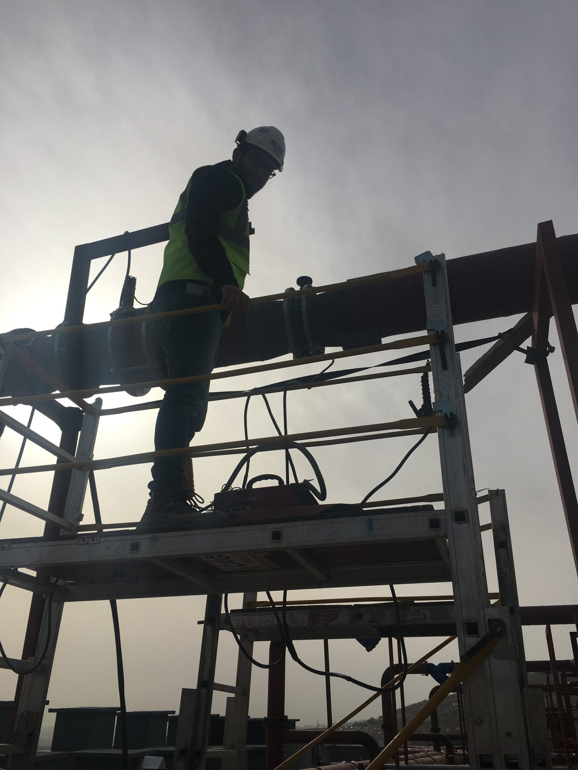 Saha mühendisimiz yapılan imalatları kontrol etmek için platforma çıkmış.